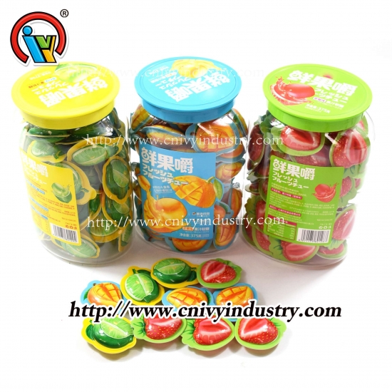 과일 컵 안에 달콤한 젤리 캔디 |